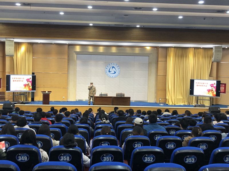 2021年12月15日下午,学院武装部组织了一场针对全院学生的应征入伍宣传动员,全院共有400余名有意向在2022年春季应征的男女同学参加大会。