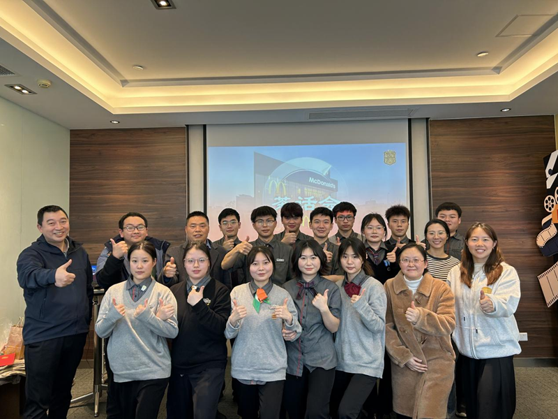 下午1时,何瑞一行参加了金拱门食品有限公司的座谈会,在座谈会上双方老师对麦苗班的学生提出了期许,然后,18级的优秀学长李滨与同学们分享了成功的经验。座谈会上,21级麦苗们一一发言,纷纷向老师们汇报、分享了各自在企业学习实践、发展晋升的收获和喜悦,表示要抓住锻炼机会,增长业务技能,提升自身的综合素质。
