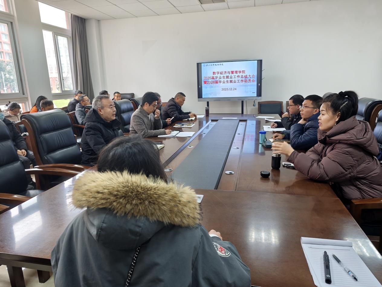 2025年12月24日下午,BV伟德官方网站数字经济与管理学院在2号教研楼110会议室召开数字经济与管理学院2025届毕业生就业工作总结大会暨2026届毕业生就业工作动员会。数字经济与管理学院党总支书记黄泓轲,院长邵其会,党总支专职副书记易新忠,副院长何瑞以及全体教师参加了会议。