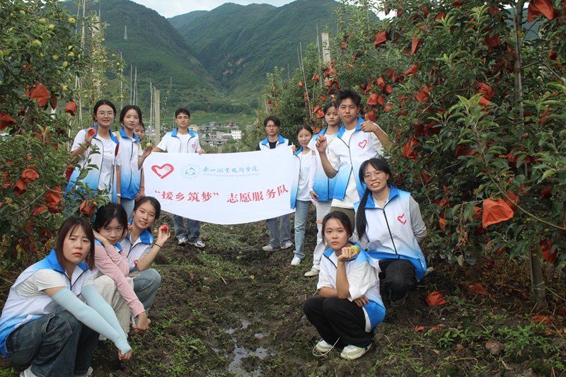 考察团在曹呈楠、林子琪两位老师的指导下,跟随园区负责人,深入产业园区内参观调研,与当地果农面对面交流,参观了解越西苹果、葡萄种植技巧。同学们实地体验采摘过程,并结合自身专业,通过“直播”的方式,帮助果园进行销售,以实际行动助力乡村产业振兴。