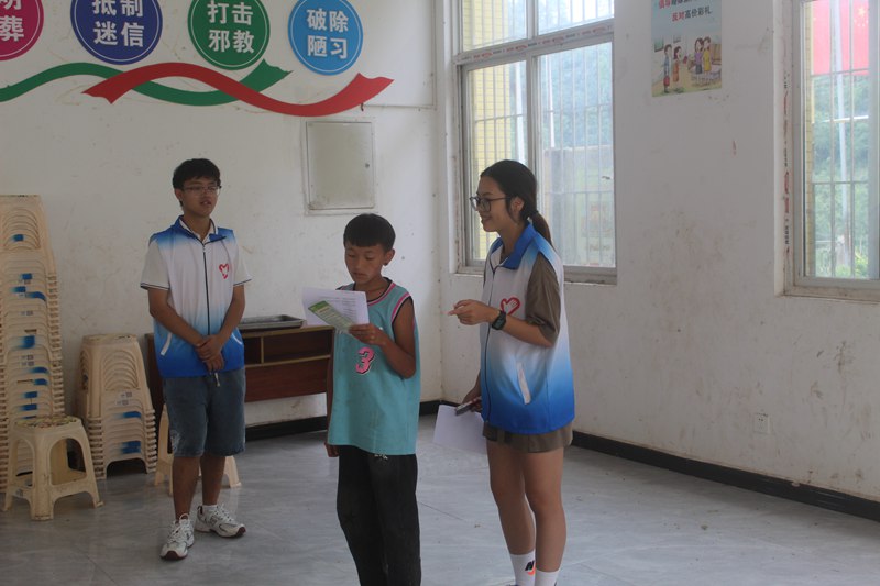 首先将同学们分成三组,对不同年龄阶段的村民进行普通话问卷调查,通过调查总结出人们对普通话的重视程度高;其次对光辉村街道进行大扫除,保持村庄干净整洁,增强同学们的劳动意识; 最后走进彝人之家对当地的儿童进行普通话的推广,小朋友积极参与普通话推广活动,感受普通话带来的乐趣。