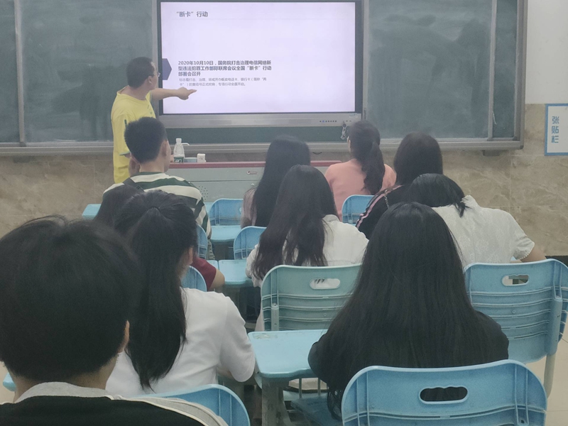 本次班会主题由辅导员组织实施,班会主题是打击“两卡”违法犯罪行为,学习的主要内容有:什么是“断卡”行动、为什么开展“断卡”行动、电信诈骗简介、电信诈骗高发类型和如何防范电信网络诈骗等五个方面的内容。最后辅导员督促同学关注了“熊猫反诈”公众号,下载并登录“国家反诈APP”,共同防范电信网络诈骗犯罪。