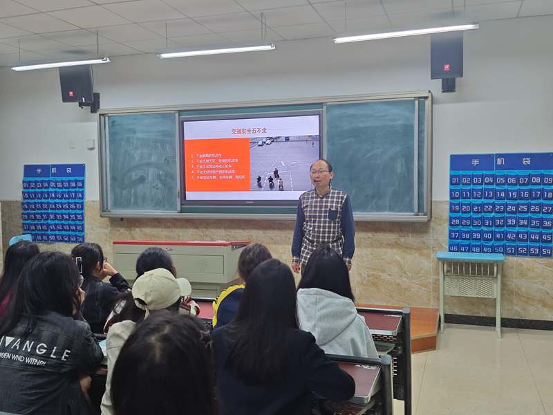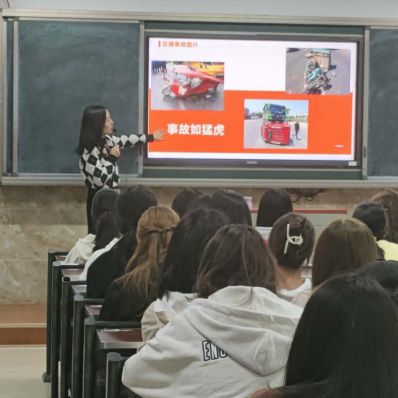 主题班会紧紧围绕学校及周边的交通环境,由辅导员组织以班级为单位进行,班会内容包括学校周边交通的状况、电动三轮车的不安性、交通事故案例及图片等。其中,交通安全教育警示片内容丰富,展示了多个案例,提示事故如猛虎,同学们从中学到了许多安全知识。