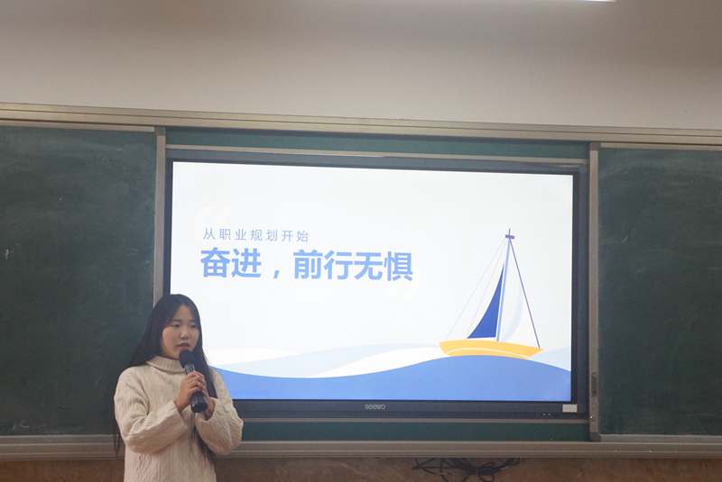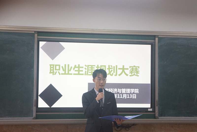 首先,由主持人蒋孟宏介绍本次大赛的出席嘉宾,随后宣布本次大赛正式开始。其次,由参赛人员向观众和评委展示自己的PPT,讲述自己的职业规划、未来的发展目标以及行动计划。在比赛过程中,参赛者们落落大方地向评委及观众讲述自己的职业规划,通过剖析自己从而对目标职业做出合理的评估,并结合自身特点,制定计划,做出适合自己的职业生涯规划。经过一番激烈角逐,在场评委根据各位选手的演讲内容、PPT制作、语言表达以及形象风度进行综合评分,观众全神贯注地倾听参赛者的讲解并从中思考自己的职业目标。最后,本次大赛在热烈而严肃的氛围中落下帷幕。