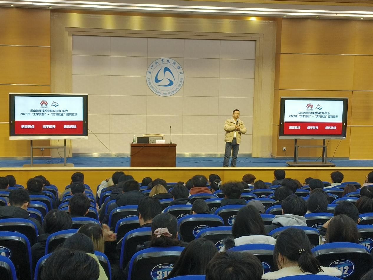 宣讲会一开始,徐思群介绍了本次宣讲会主讲人红海集团——华为校企合作部校招经理邝文发,并对邝老师的到来表示热烈欢迎,接着介绍了本次专场宣讲会的核心目的以及对学生职业发展的重要意义,希望同学们能珍惜此次校企对接机会,积极交流互动、明确发展方向。随后,邝老师通过 PPT 演示、案例分享等方式,详细介绍了本次宣讲针对高校学生的工学交替培养方案,包括实习岗位设置、技能培训体系、薪酬福利保障等关键内容,并重点解读了 “理论学习 + 岗位实践” 相结合的工学交替模式优势。针对学生关心的实习转正政策、就业岗位分布、职业发展通道等问题进行了具体说明。在互动答疑环节,企业代表与学院师生展开深入交流,逐一回应了学生关于岗位适配要求、技能提升重点、实习地点选择等疑问,现场交流氛围浓厚。