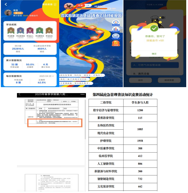 为全面贯彻落实党的二十大精神,深入学习宣传习近平法治思想,加大普法工作力度,提升应急法治意识,学校组织各二级学院学生于2023年4月9日-28日参加由应急管理部主办的“夯实应急法治基础,青春飞扬技能报国”第四届应急管理普法知识竞赛活动。