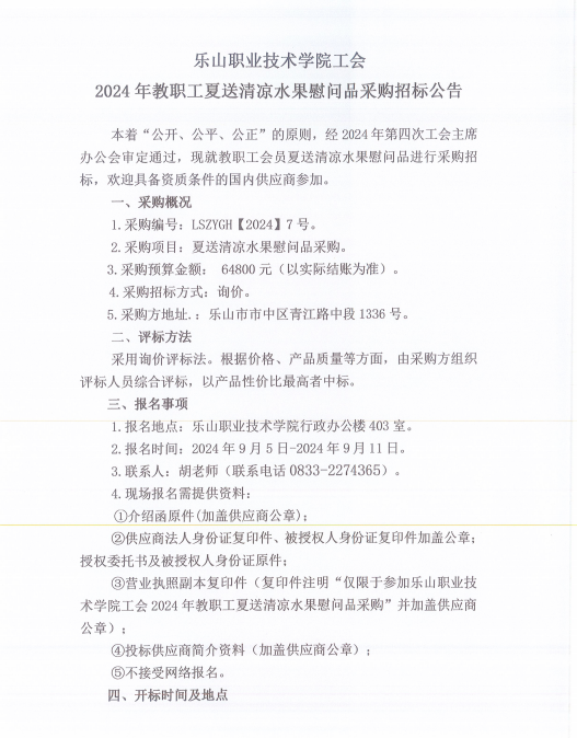 BV伟德官方网站工会2024年教职工会员国庆节慰问品采购招标公告