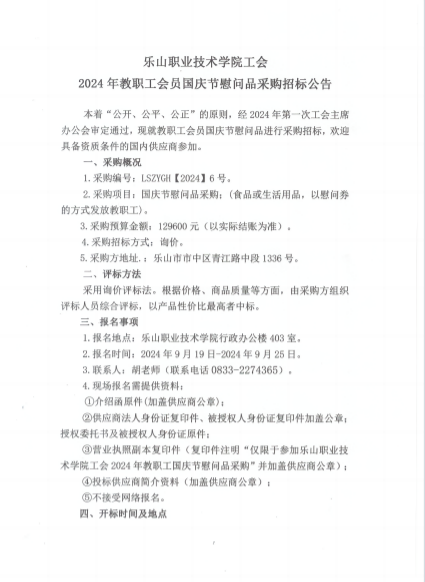 下一条:BV伟德官方网站工会2024年教职工会员国庆节慰问品采购招标流标公告