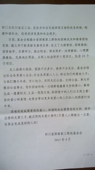 关于认真开展四川省困难职工帮扶基金会善款募集活动的通知