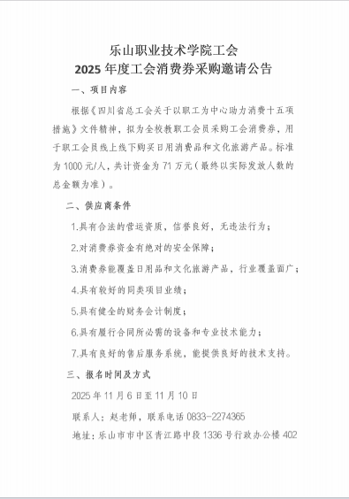 BV伟德官方网站工会 2025年度工会消费券采购邀请公告