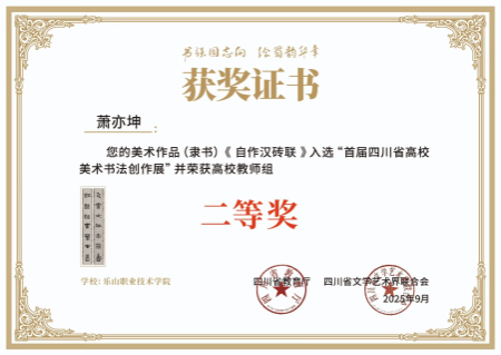 伟德官网职工书画协会老师萧亦坤获“首届四川省高校书法美术创作展”高校教师组二等奖。