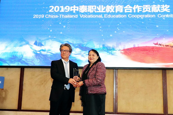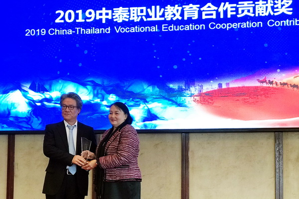 大会期间,泰国教育部职业教育委员会、泰国一带一路基金会,向在中泰合作办学中作出突出贡献的个人与单位颁奖。BV伟德官方网站荣获“2019中泰职业教育合作贡献奖”,泰国教育部职教委副秘书长巴塔玛女士为学院颁奖。