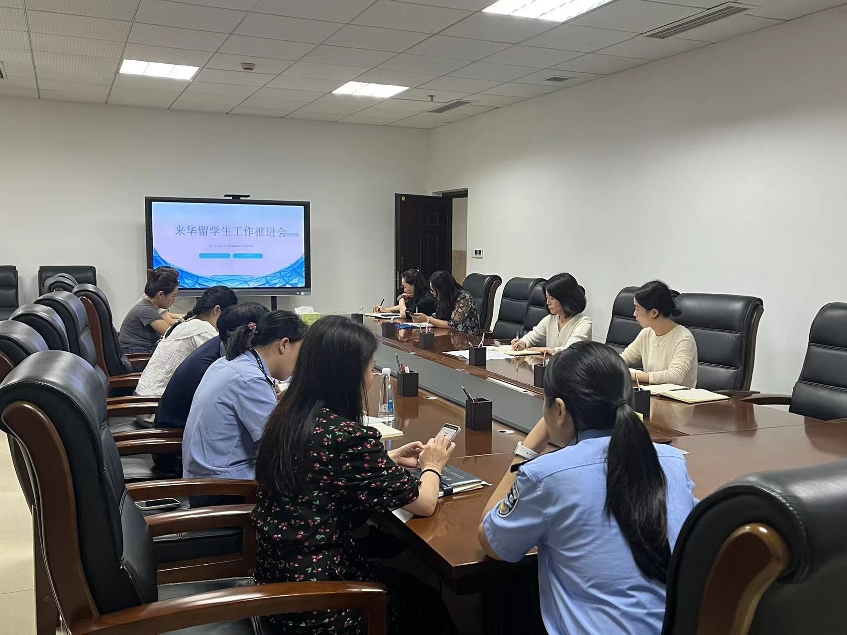 会上,各职能部门围绕来华留学生工作展开多维分享。在学习调研板块,相关负责人分享外出考察成果,为留学生教育管理模式创新提供了借鉴;教学管理方面,针对部门间教学资源沟通不畅的痛点展开研讨,重点提及留学生返校登记、课程衔接等工作,为打通教学协同“堵点”提供了思路;学生活动板块则介绍了近期文化体验、学术交流类活动的开展情况,展现了留学生校园生活的丰富性。