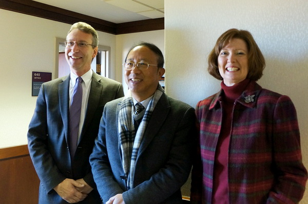 此外,薛建平院长还带队考察了詹姆斯•麦迪逊大学,会见了该校副教务执行长詹姆斯•谢弗并参加座谈。座谈会上双方就开展广泛的合作与交流进行了探讨,并就校际学术交流与合作、高层次人才培养、师资培训、学生深造等领域进行深入交流,双方表示,愿意发挥各自优势,进一步加强交流,推动更多实质性合作项目的开展。