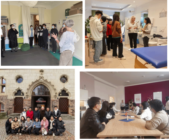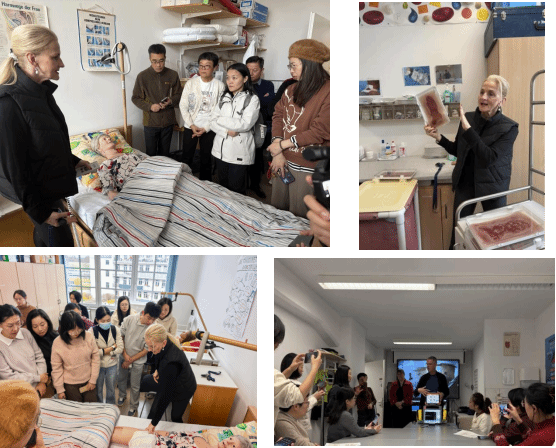 为深化对德国养老护理职业教育的理解,培训团实地参访多类代表性机构。在德国Medicampus医护学院,学员们走进专业课堂,了解实训教室功能布局、教具配置标准,以及“情景模拟”课程的实施过程。