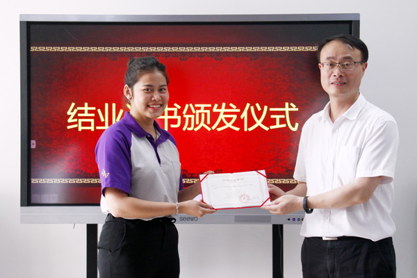 陈芝海副宣读了结业生名单,蹇路、刘忠分别为交流教师潘乐朋和5名交换学生颁发了结业证书。