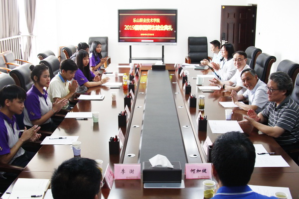2019年5月23日下午,2019届泰国交换师生结业典礼在学院行政楼424会议室进行。学院党委书记蹇路、院长刘忠、党委副书记陈芝海及相关处室、系部负责人和工作人员参加了典礼。结业典礼由党(院)办主任、国合处处长黄晓莉主持。 典礼上,蹇路代表学院对泰国交换师生顺利结业表示祝贺。他希望此次结业的泰国师生在回到自己的祖国后,牢记诗琳通公主的殷切嘱托,继续在学业上不断深造,在专业上更上一层楼,回国后继续做好中泰友谊的使者,将这份情谊绵延发展!
