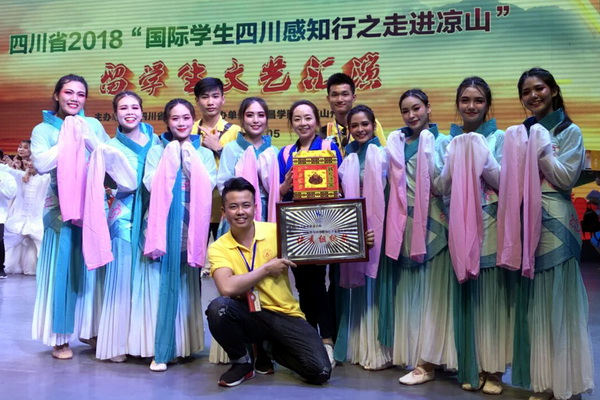 2018年5月24-27日,由四川省教育厅主办的“四川省首届国际留学生文化节”在西昌学院举行。全省27所本、专科院校的,来自40多个国家的国际学生受邀参加了此次活动。省教育厅副厅长彭翊、省教育厅国合处处长廖飞出席了本次活动开幕式。 学院学生工作部副部长、留学生管理办工室副主任范辰和国合处张晶晶老师,带领学院12名留学生参加了此次活动。本次文化节活动设有“我国家的中国元素”演讲比赛、“我的留学生活及我眼中的四川”摄影作品大赛、留学生风采展示文艺晚会及感受凉山文化及民族体育等活动。