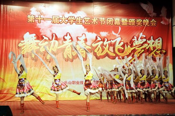 2014年12月10日晚19时,学院第十一届大学生艺术节闭幕暨颁奖晚会“舞动青春 放飞梦想”在白塔街校区礼堂隆重举行。共青团乐山市委书记、市青联主席陈林强,学院领导蹇路、薛建平、陈芝海、陈元进、陈国银,四川省质量技术监督学校护理系主任周国光,学院附属医院院长向孟刚以及各系(部)总支书记、处(室)负责人、全院师生代表共计2000余人共同观看了演出。