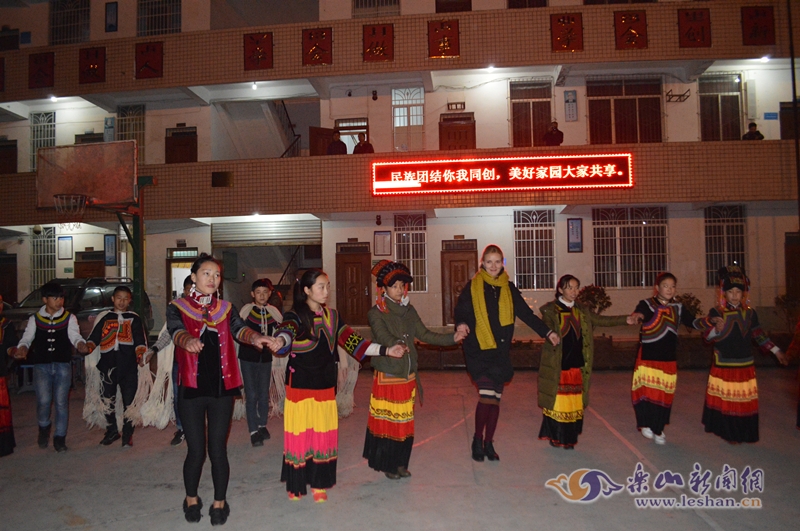 彝族是火的民族,有朋自远方来,怎么能少了那熊熊的篝火。当夜幕降临,黑竹沟镇西河中学操场上燃起了篝火,外籍师生和同学们一起围着火堆,牵着双手,放声歌舞。