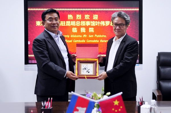 At the end of the meeting, Deputy Secretary Chen Zhihai presented gifts to Consul General Iem Puthviro on behalf of the college.