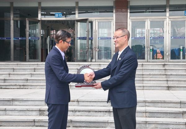 President Liu Zhong gave Sadao a gift on behalf of the college. All the attendees took a group photo in front of the library.