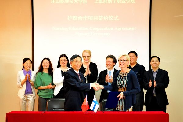 According to the agreement, in 2014, our college will collaborate with Ylivieska Vocational College to introduce Finnish nursing teachers and curricula to specifically train nursing students. After completing the first two years of the Sino-Finnish joint program at our college, students will spend their third year in Finland to study the remaining theoretical courses, undertake internships, and take the Finnish nursing "Competency-Based Qualification" exam to obtain the Finnish nursing qualifications. This will ultimately lead to high-paying employment opportunities in Finland. Additionally, the agreement includes cooperation on training our college’s professional teachers and conducting three-month short-term student exchange programs between the two institutions.