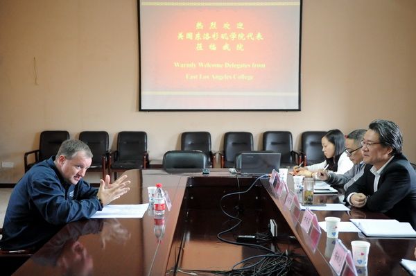 On the afternoon of October 26th, 2015, at 2:30 p.m., Mr. Jeremy Allred, the Director of Admissions from East Los Angeles College in the United States, visited our college to discuss cooperation.