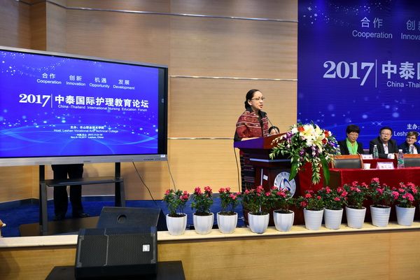At 8:30 a.m. on November 9, 2017, accompanied by cheerful duets of Chinese and Thai folk songs, the first China-Thailand International Nursing Education Forum opened grandly in the college's academic lecture hall. Leaders in attendance included Peng Yi, Deputy Director of the Sichuan Provincial Department of Education; Liao Fei, Director of the International Exchange and Cooperation Office of the Sichuan Provincial Department of Education; Yang Wenpei, Deputy Secretary-General of the Leshan Municipal People's Government; Chen Kun, Director of the Leshan Municipal Education Bureau; Tan Hui, President of the Leshan Association for International Friendship; Zhou Yi, Deputy Director of the Leshan Health and Family Planning Commission; Anchalee, Vice President Representative of the Thai Red Cross College of Nursing; representatives from the Thai Central Nursing Alliance II; Yaowadee, President of the Queen Mother Phutthabat College of Nursing; Ratcow, President of the German Böllinger Nursing College; and Jian Lu, Secretary of the Party Committee of Leshan Vocational and Technical College. The opening ceremony was presided over by Chen Zhihai, Deputy Party Secretary and Discipline Inspection Commission Secretary of the college.