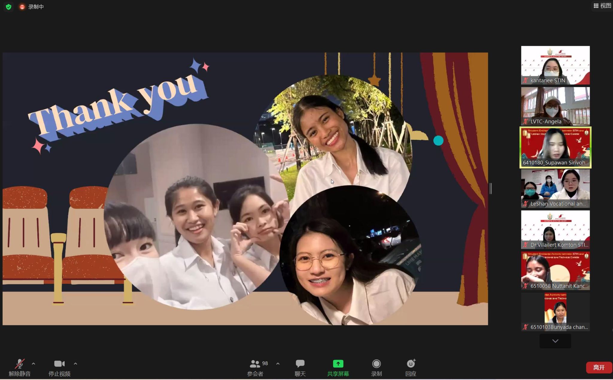 Subsequently, Teacher Zhang Jingjing from our college reviewed the cooperation and exchanges between our college and the Thai Red Cross Nursing College over the past 11 years. She summarized the online teacher-student activities in the post-pandemic period and warmly invited the Thai Red Cross Nursing College's teachers and students to visit Leshan for exchanges at an appropriate time.