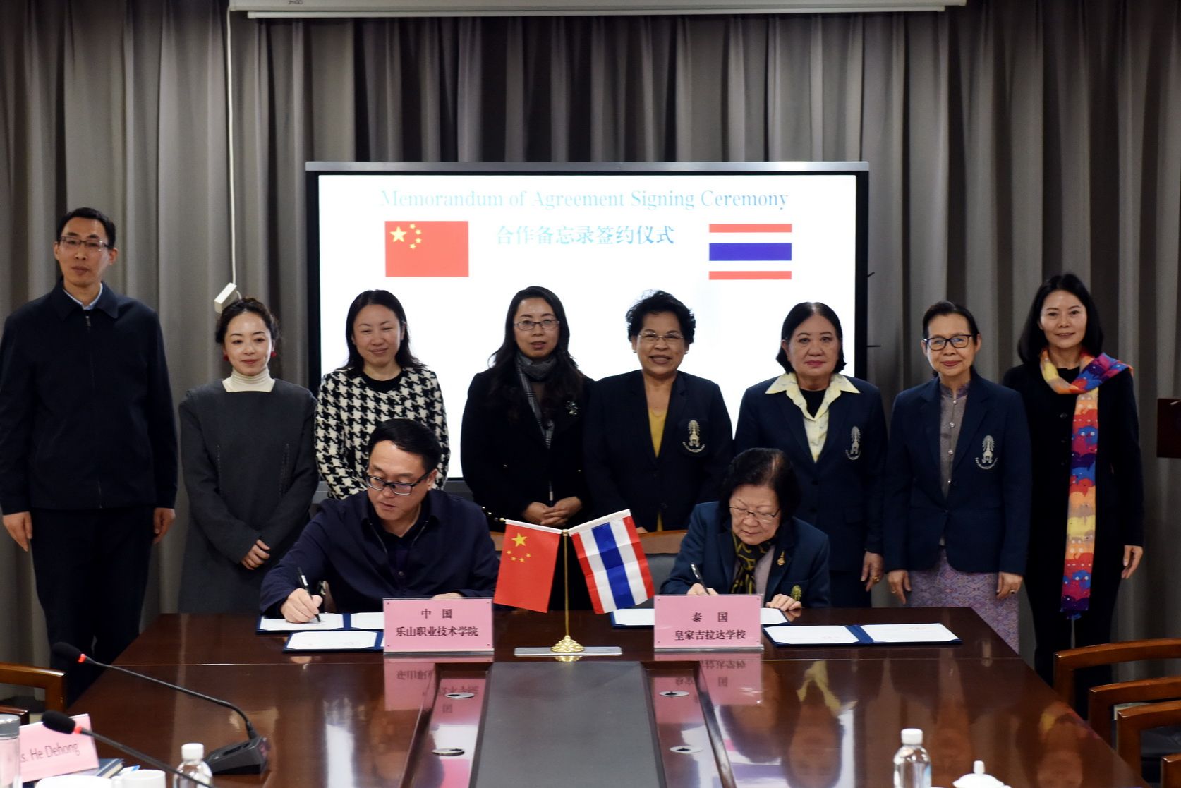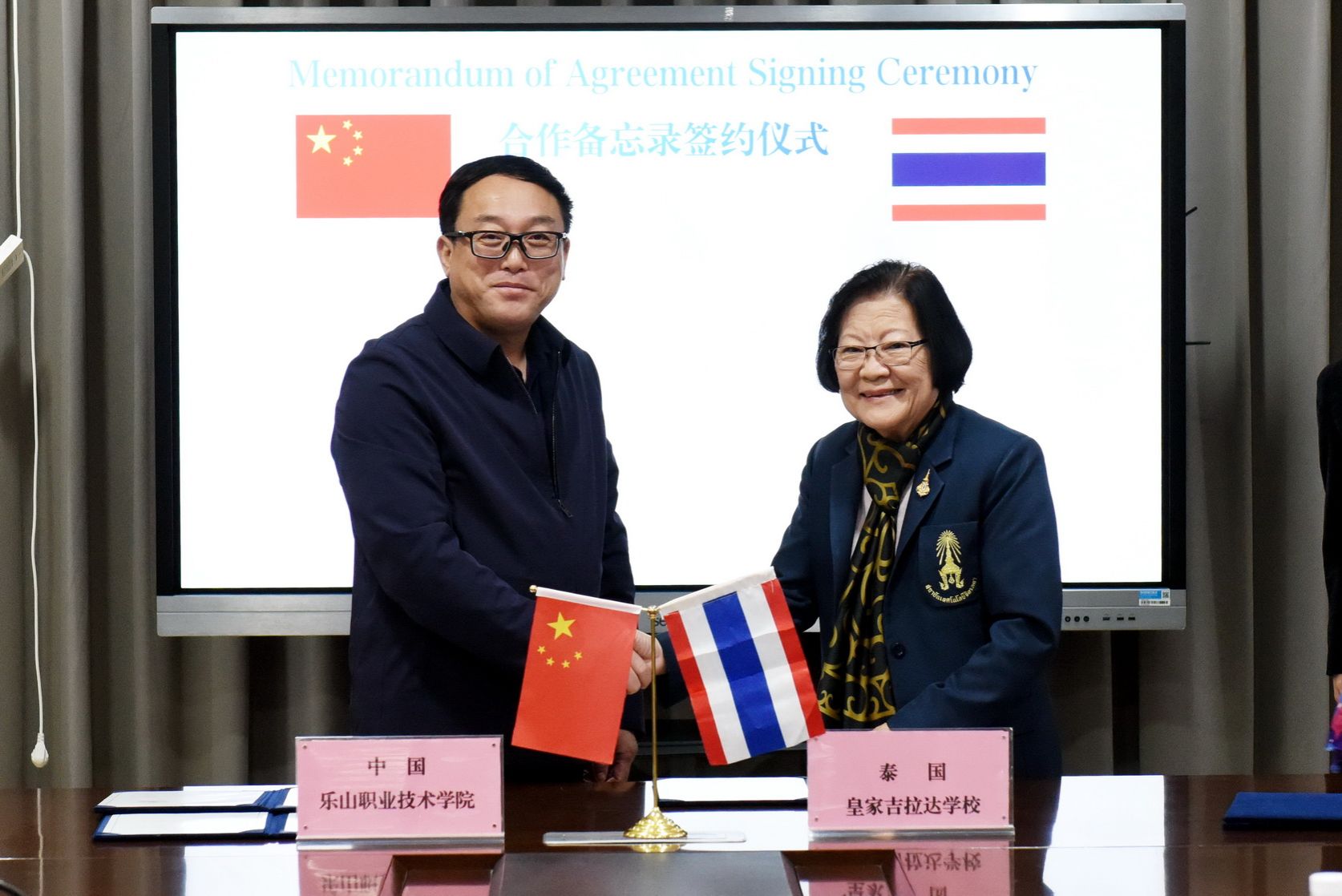 Principal Kunying of the Royal Girldat Technical College reviewed the history of cooperation and exchange between the Royal Girldat Technical College and Leshan Vocational and Technical College. He highly praised the beautiful learning and living environment and the teaching level of Leshan Vocational and Technical College and expressed sincere thanks to Leshan Vocational and Technical College for its cultivation of Thai international students. He also emphasized that both sides should expand the areas of cooperation and further strengthen exchanges and cooperation. The participants from both sides had in-depth discussions on relevant cooperative matters, and Cheng Dingbin and Kunying signed the memorandum of cooperation on behalf of their respective schools.