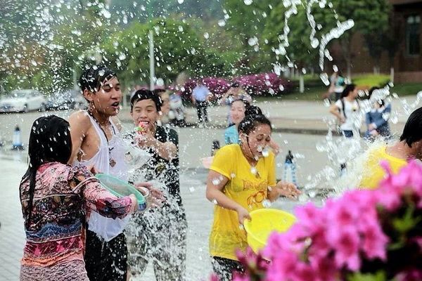 On April 14th, 2014, 38 international students from Laos and Thailand at our college, led by their teachers and armed with buckets and basins, gathered at the Osmanthus Square of Leshan Normal University to celebrate their own festival—the Water-Splashing Festival—along with other international students in Leshan.