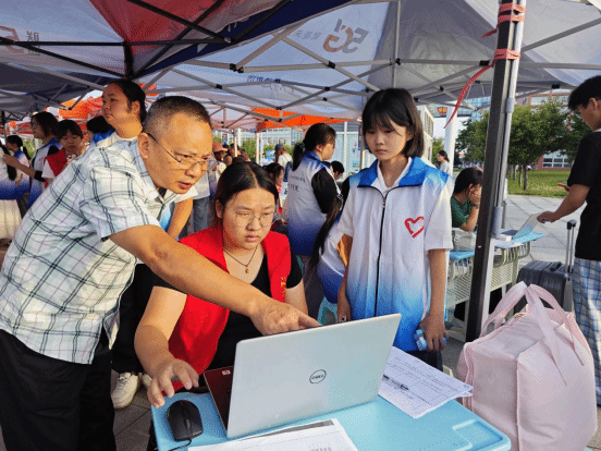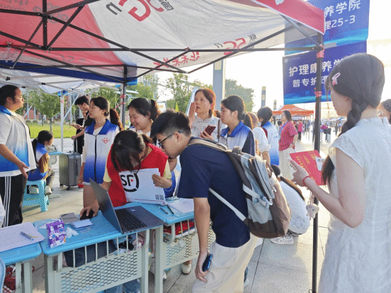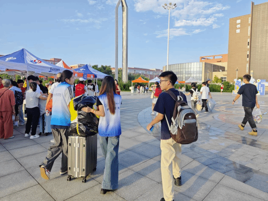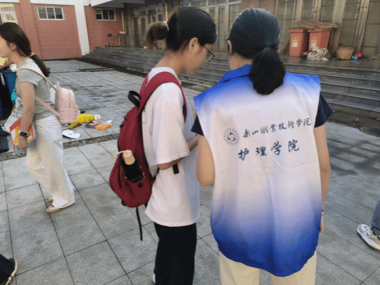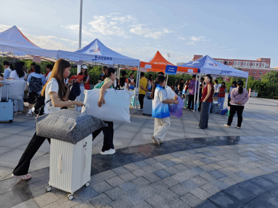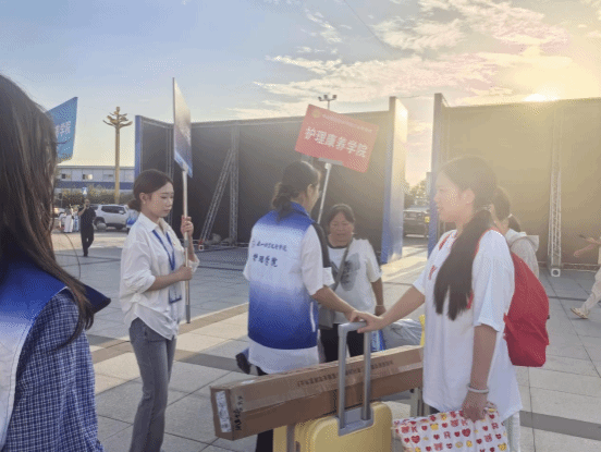 护理康养学院的迎新点位现场,处处彰显着护理康养专业的温情底色——“白衣志愿队”分工明确、热情饱满。志愿者们不仅为新生提供全程引导,协助完成自主报到、助学贷款等手续办理,还耐心解答专业学习规划、生活设施使用等疑问;更结合学院专业优势,向新生细致普及宿舍卫生防护知识,用专业温度消解初入校园的陌生感。针对行李较多或独自报到的新生,学院还专门安排了专属志愿者提供行李搬运服务,以细致入微的举动,让新生初进校园便感受到“家”的温暖。