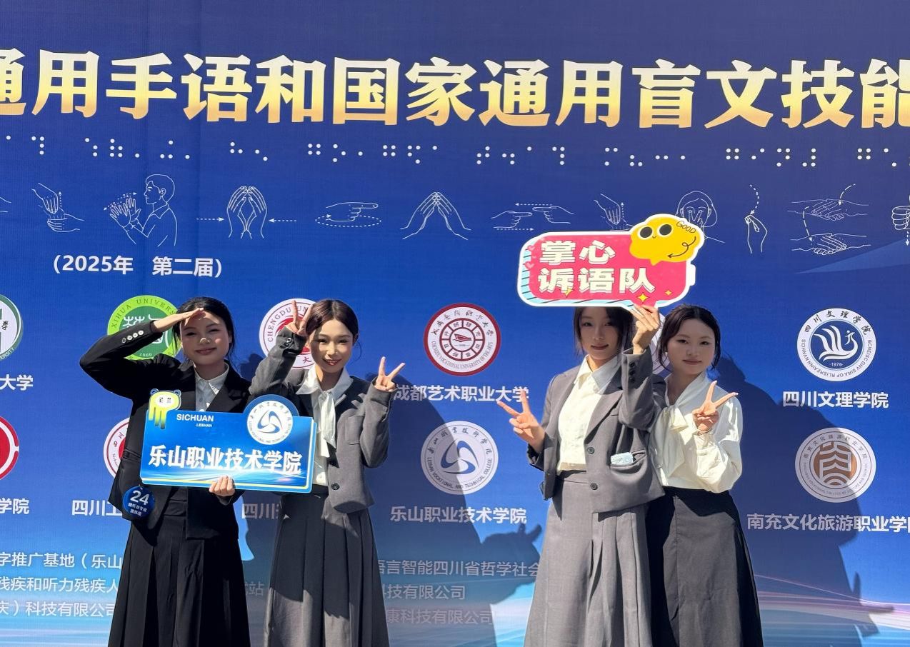 2025 年10月18日,第二届四川省大学生国家通用手语和国家通用盲文技能竞赛顺利举办并圆满落幕。本次赛事竞争激烈,吸引全省多所高校的 28 支参赛队伍同台竞技,充分展现各高校在特殊语言技能培养领域的成果。其中,护理康养学院组建的 “掌心诉语” 团队表现突出 —— 在李姝环、熊乾琳两位教师的悉心指导下,团队成员黄馨、李婷、傅诗雨、汪诗琪凭借扎实的手语功底与稳定的现场表现力,从 28 支队伍中脱颖而出,最终荣获大赛非专业组三等奖。