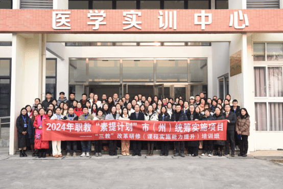 2025 年 1 月 3 日,乐山市教育局 2024 年职教 “素提计划” 市(州)统筹实施项目 ——“三教” 改革研修(课程实施能力提升)培训班开班仪式在BV伟德官方网站 1 号实训楼举行。乐山市教育局相关负责人、学校党委副书记、工会主席张佳,护理康养学院领导、工作坊指导老师、项目班主任及来自乐山市 17 所中职学校的 68 名参训学员参加仪式。