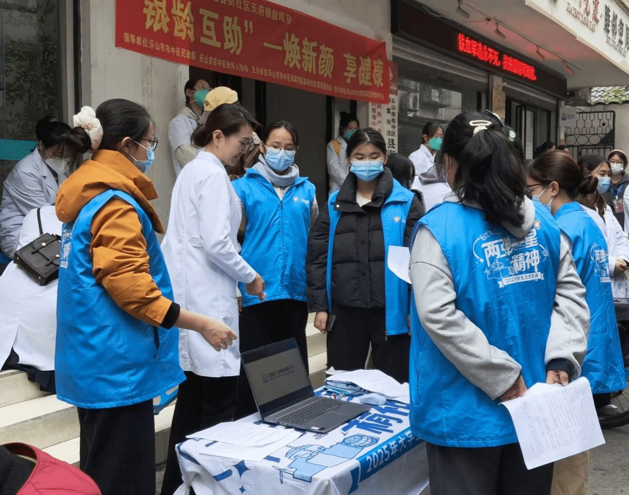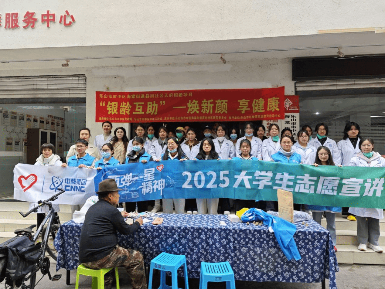 2025 年 11 月 14 日,护理康养学院成功开展 “义诊惠民暖人心,两弹一星励前行” 志愿活动。活动由吴妍、张鸿宇、杨庆、王竹四位老师担任指导,“强国星途” 宣讲团 9 名成员、伏羲九针针灸推拿社 23 名社员共同参与,师生志愿者共计 36 人。