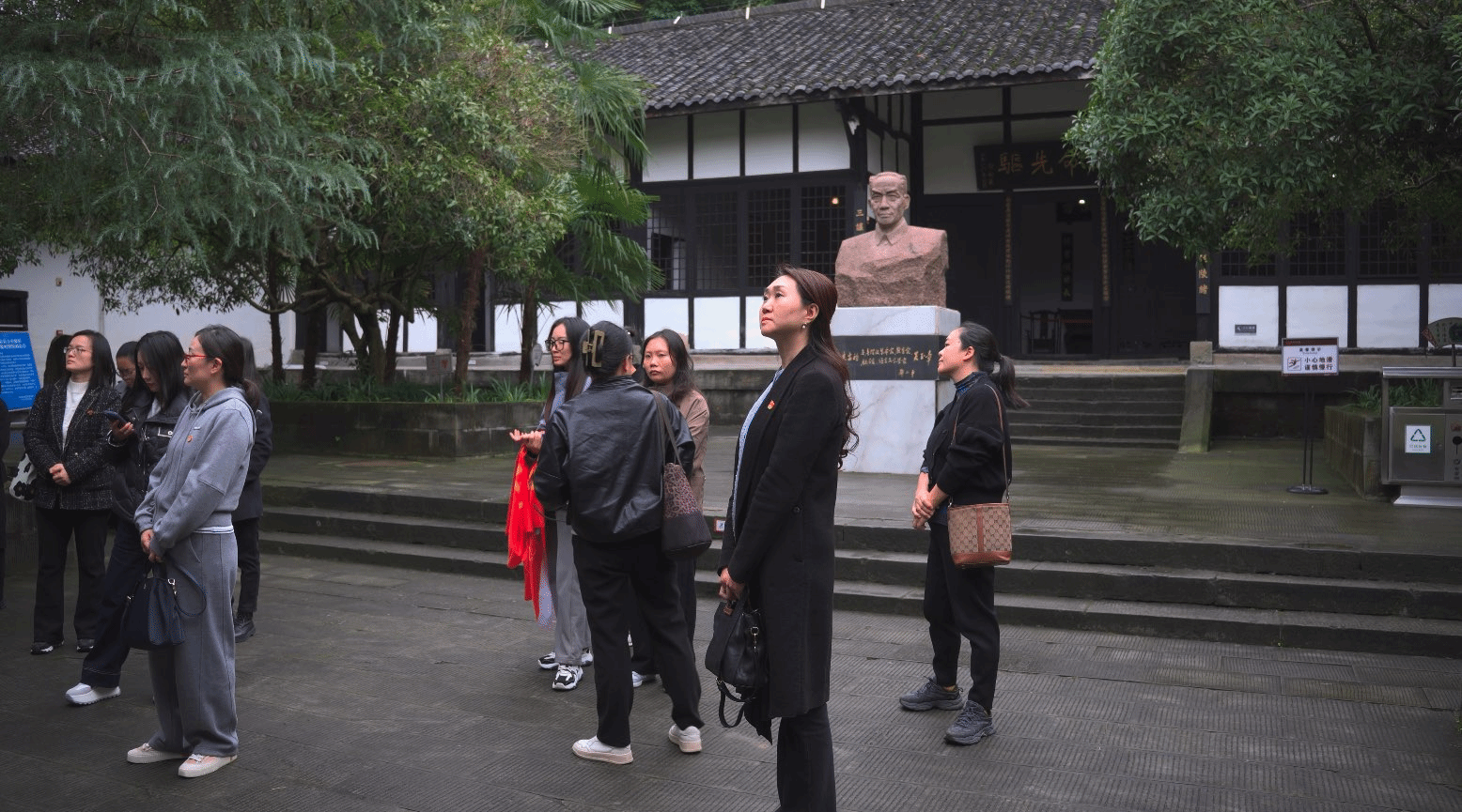 活动当天,党员集体乘车前往吴玉章纪念馆。在讲解员引导下,大家参观了故居、合葬墓及树人苑等区域,深入了解吴玉章同志的革命事迹与教育思想。参观结束后,支部组织开展了现场学习研讨,交流感悟。