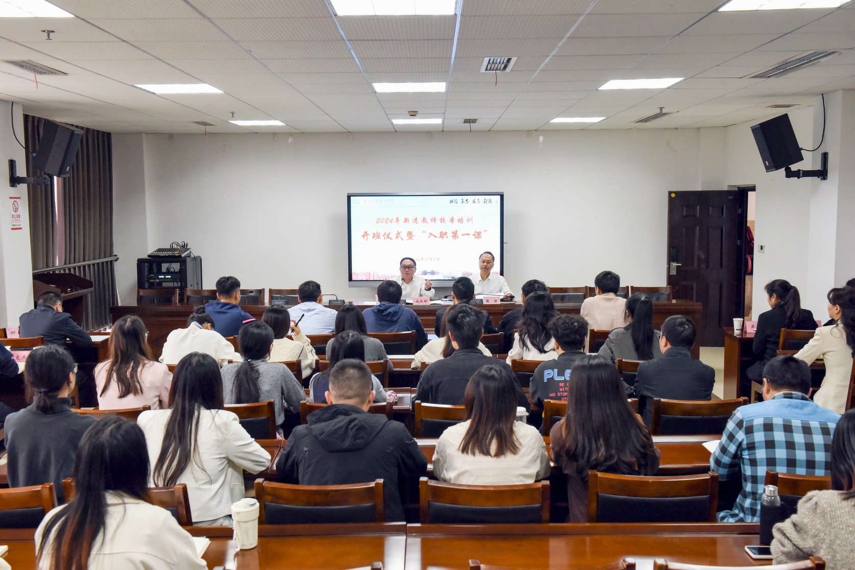 10月9日下午,学校2024年新进教师规范化校本培训开班仪式暨“入职第一课”在行政楼401会议室启动。学校党委书记成定彬出席并讲“入职第一课”,开班仪式由党委副书记、工会主席张佳主持。2024年全体新入职教师,相关部门负责人参加培训。