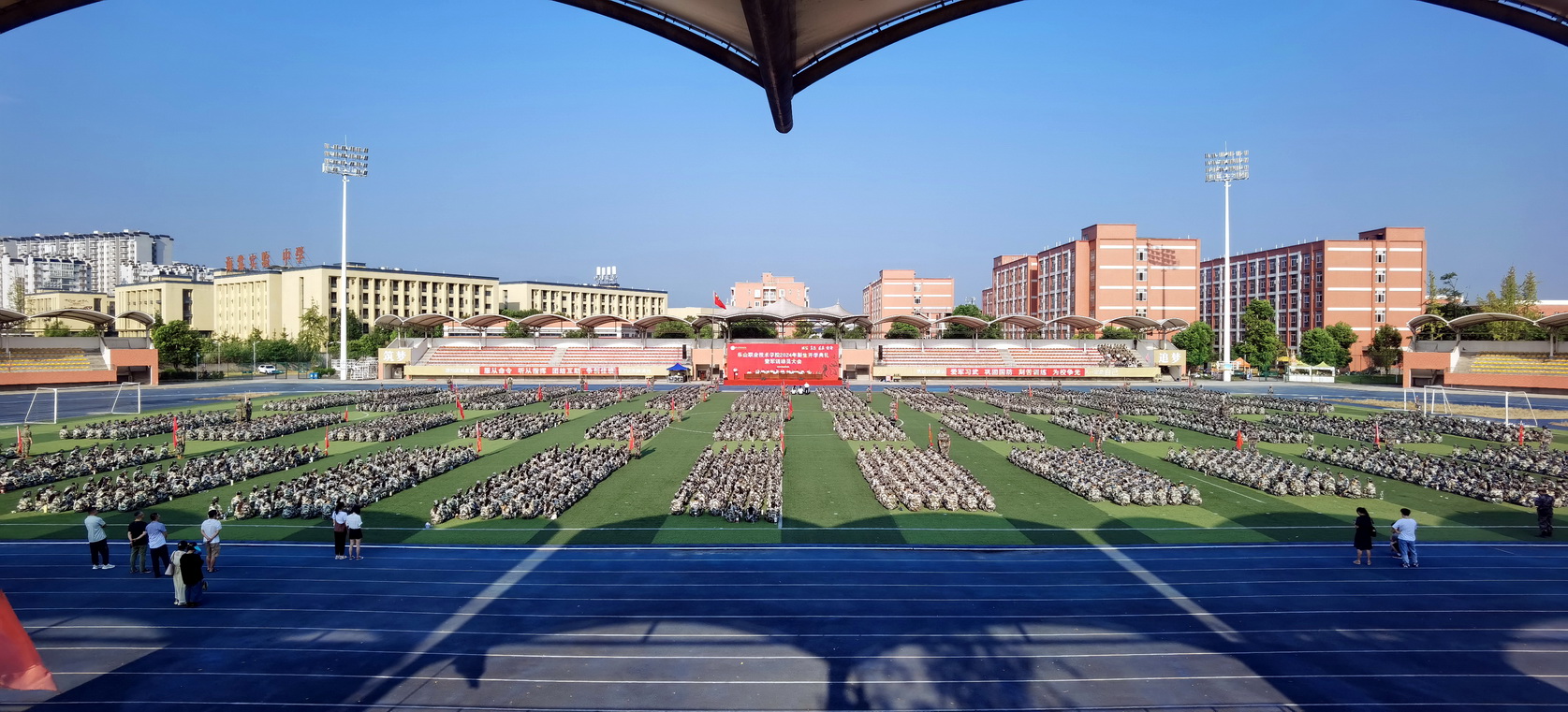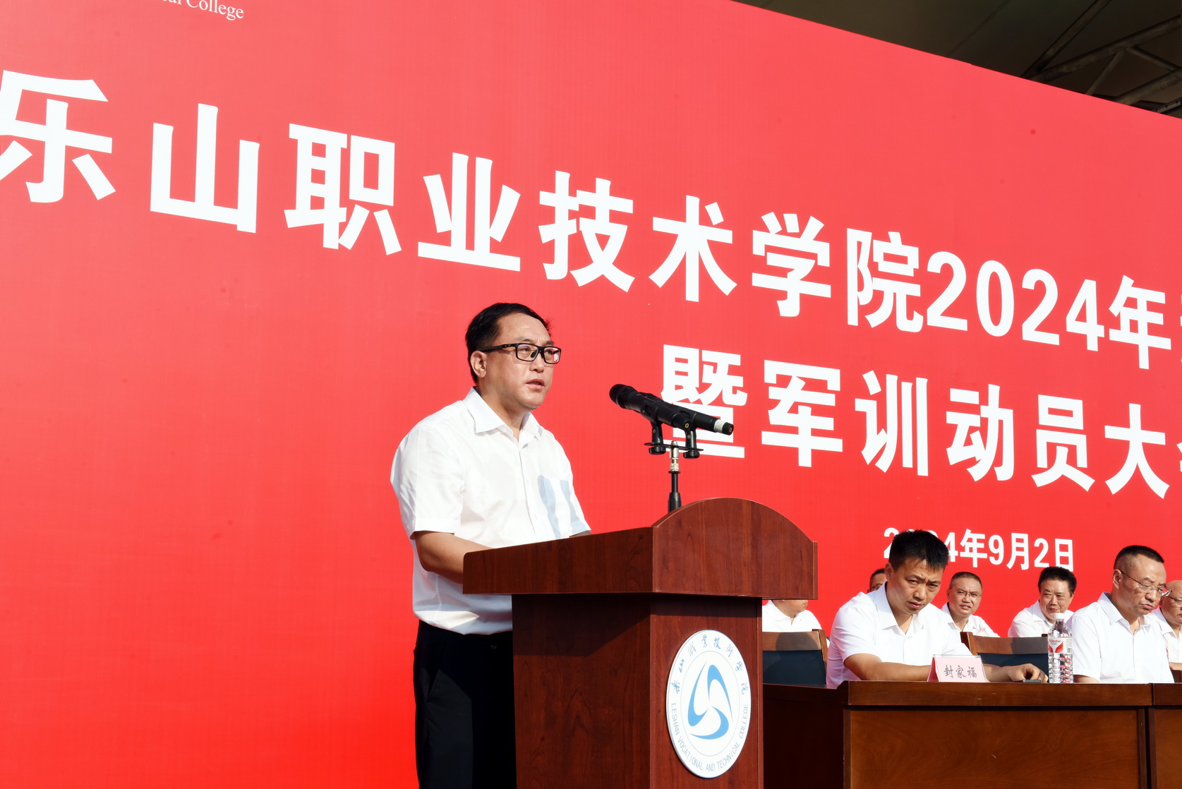 2024年9月2日上午,BV伟德官方网站2024级新生开学典礼暨军训动员大会在学校体育场隆重举行。全体校领导,各部门负责人、各二级学院党总支书记、专职副书记,新生班级辅导员、军训教官和2024级全体新生参加大会。大会由学校党委委员、副校长张学河主持。