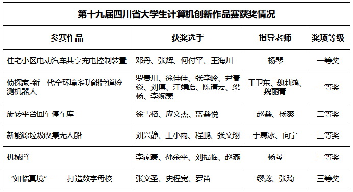 参加四川省计算机创新作品赛,进一步激发了学生们学习和掌握计算机信息技术的兴趣,对培养学生的团队协作能力、创新创业能力及运用新一代信息技术解决实际问题的综合实践能力具有积极的作用。