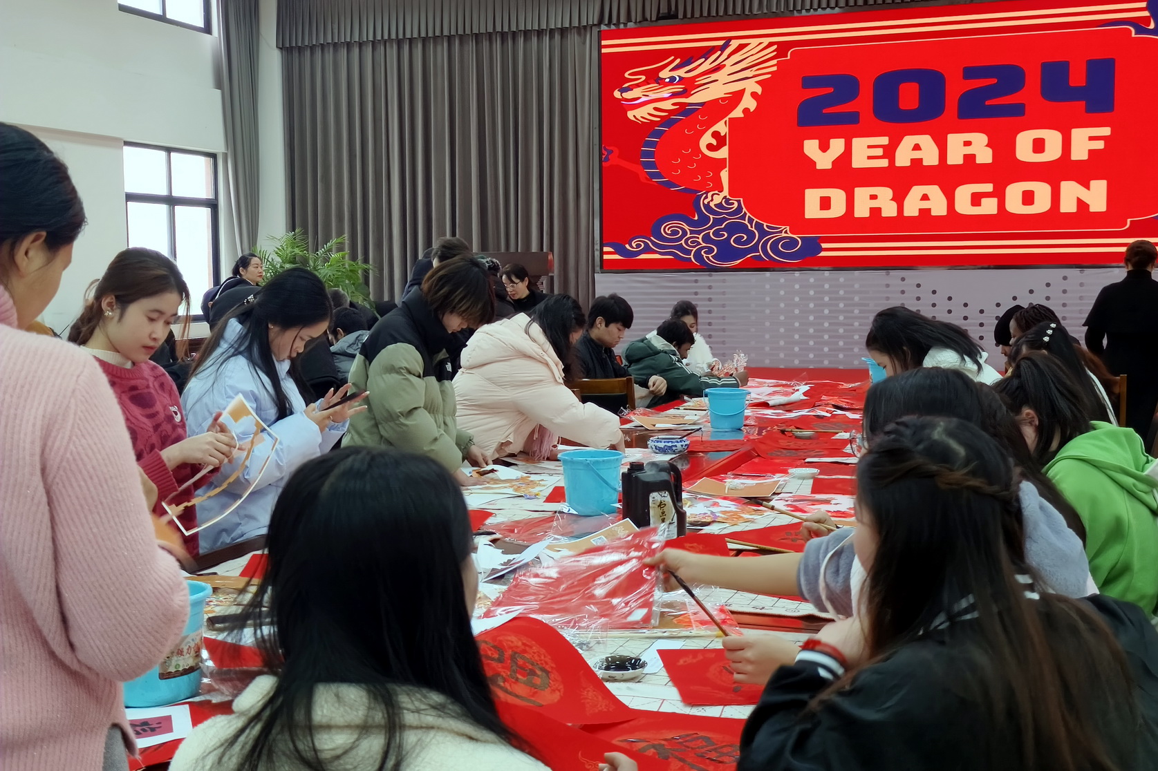 为了让来华留学生切身感受中国传统春节喜庆祥和的节日气氛,2024年2月7日,BV伟德官方网站举办主题为“龙行龘龘 前程朤朤”来华留学生“感知中国”龙年春节文化体验特别活动。学校校长刘忠,党委副书记张佳,国际学院教师以及学校书法协会的老师们与假期留在学校的来华留学生同贺新春。