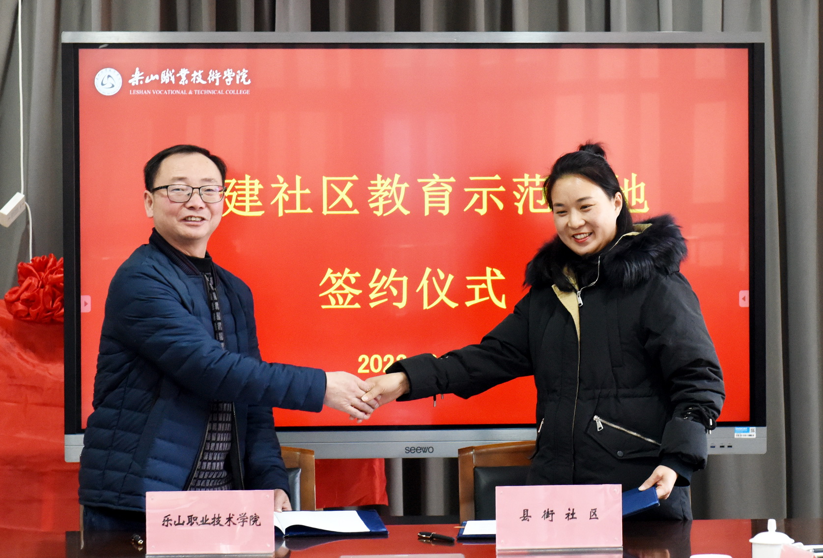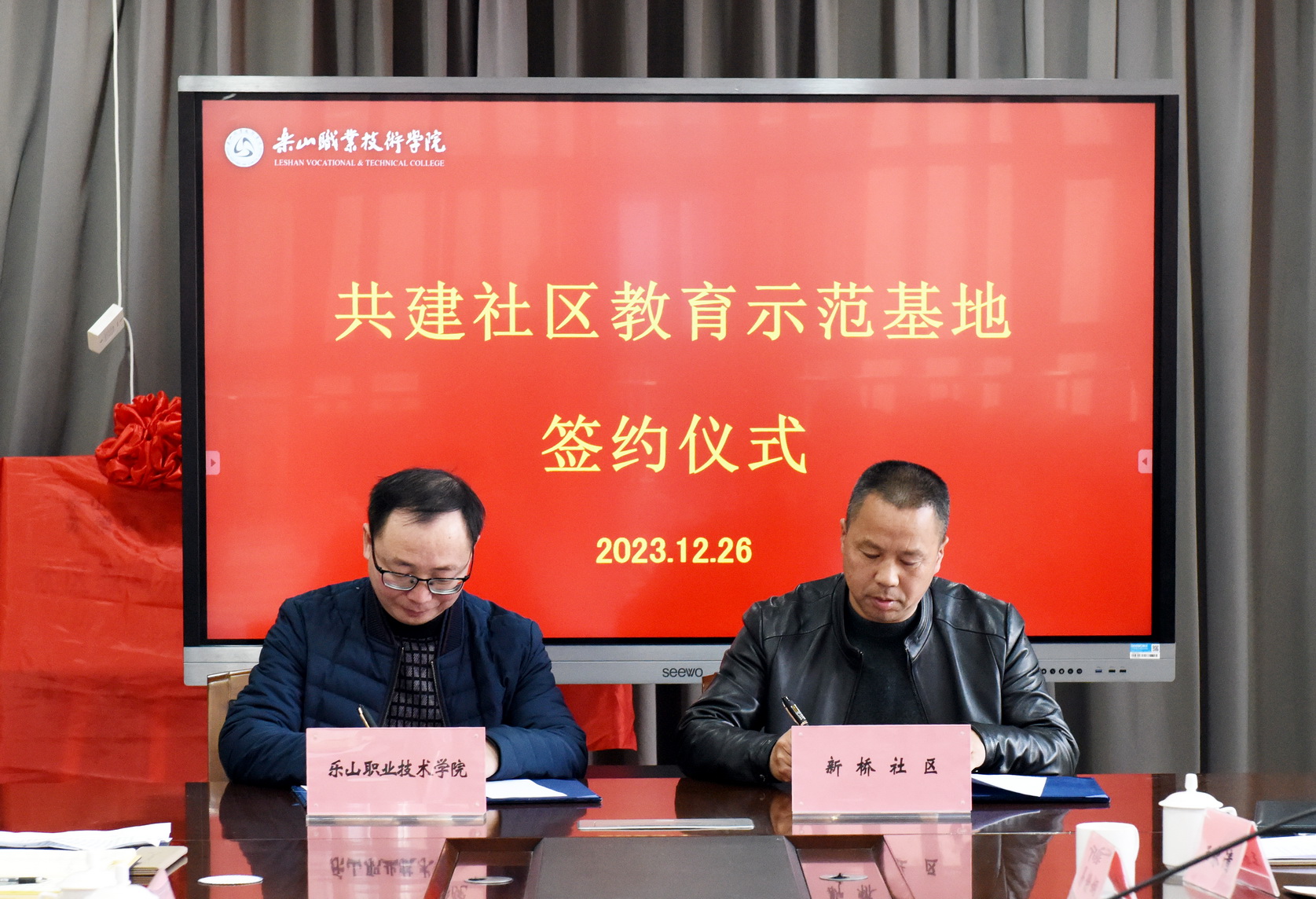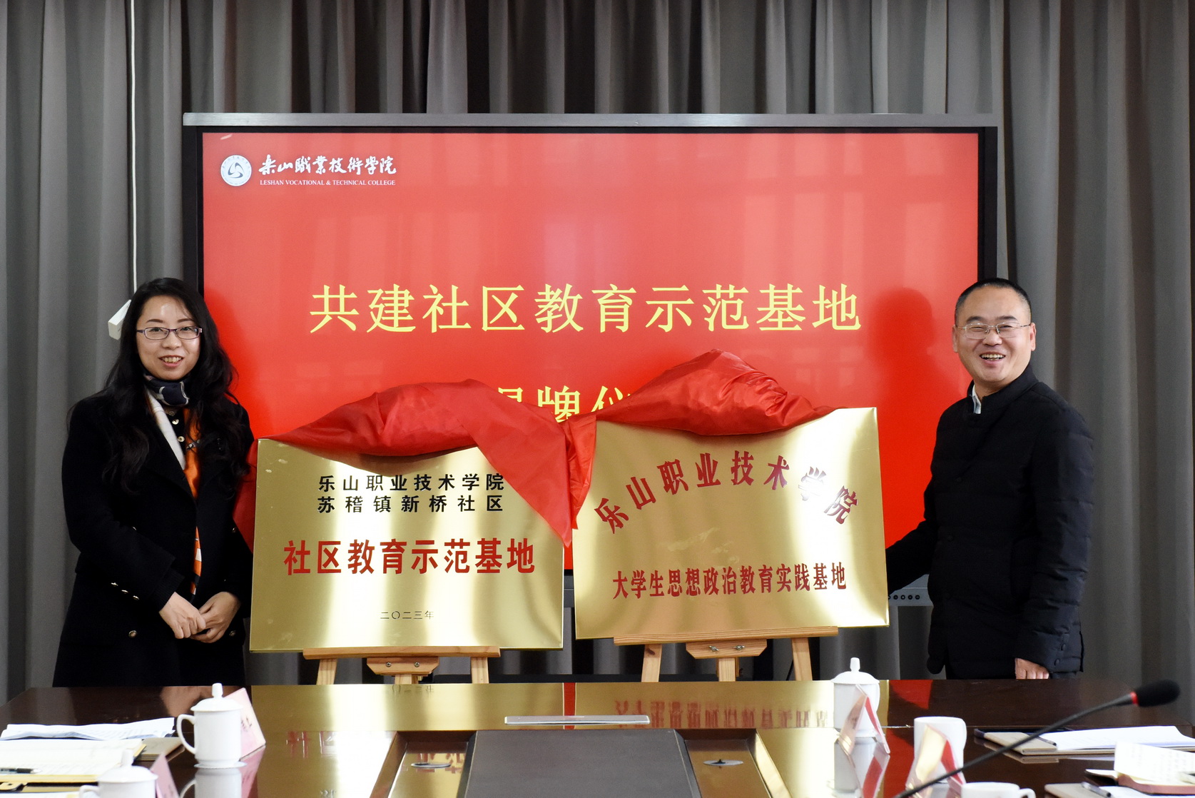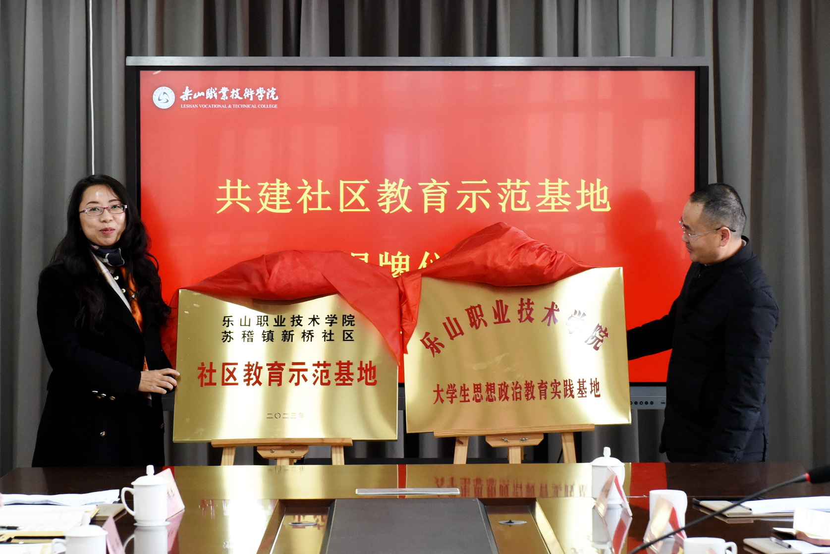 12月26日下午,校地共建“社区教育示范基地”签约揭牌仪式在学术交流中心2001会议室举行。学校党委委员、副校长周芹,乐山市海棠街道党工委书记袁梅,苏稽镇党委书记周健,相关街道和社区负责人,学校法规处、继续教育学院、马克思主义学院相关负责人参加。