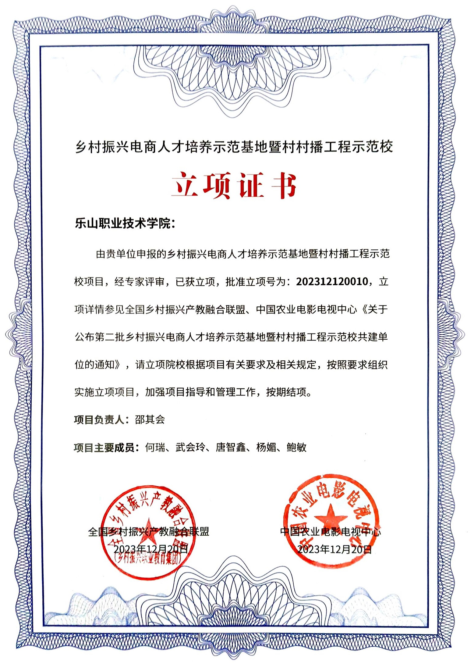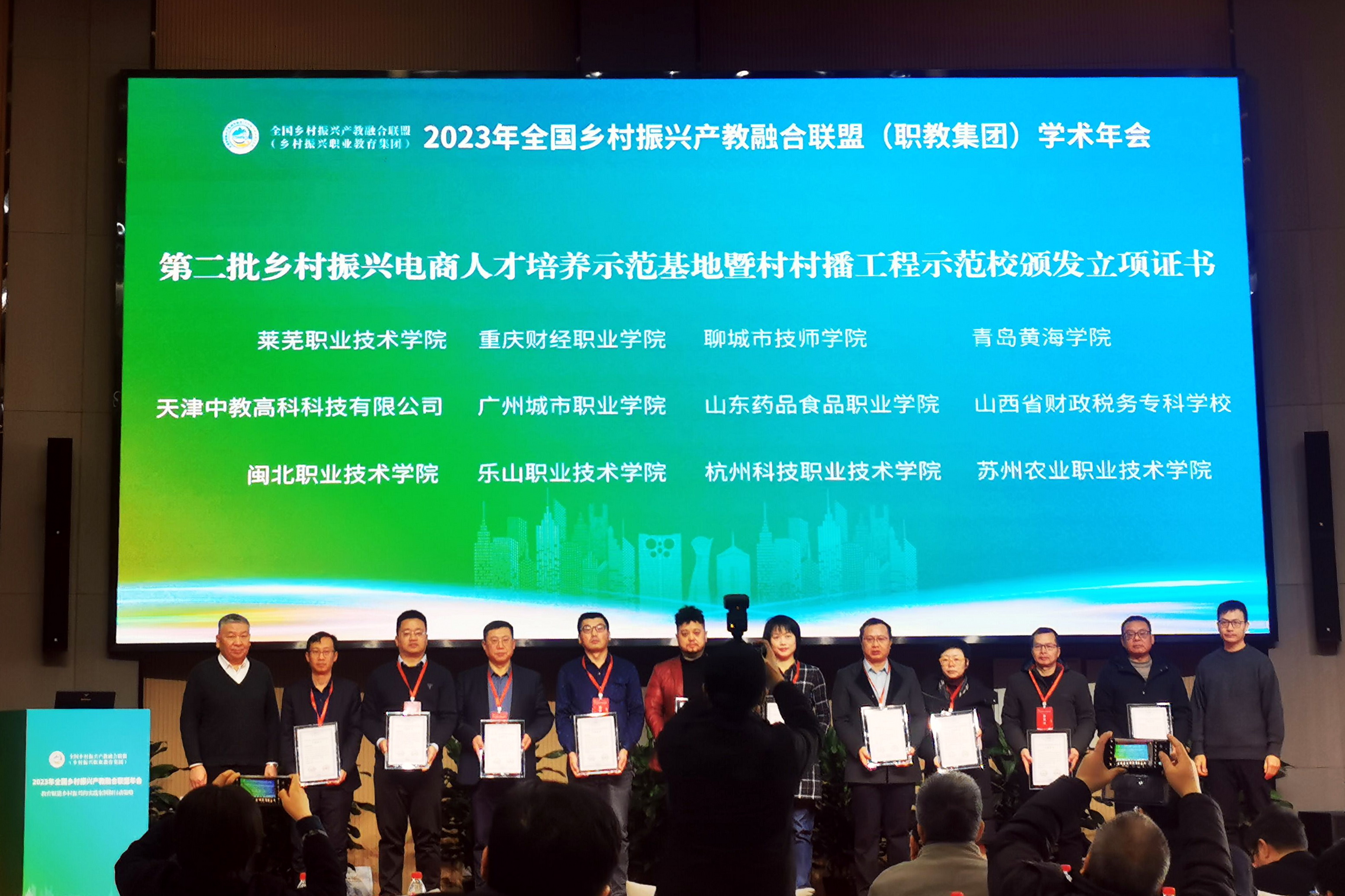 本次年会颁发了第二批乡村振兴电商人才培养示范基地暨村村播工程示范校立项证书。会前,联盟对第二批乡村振兴电商人才培养示范基地暨村村播工程示范校申报学校进行了实地考察、专家评审和答辩,BV伟德官方网站成功申报立项。