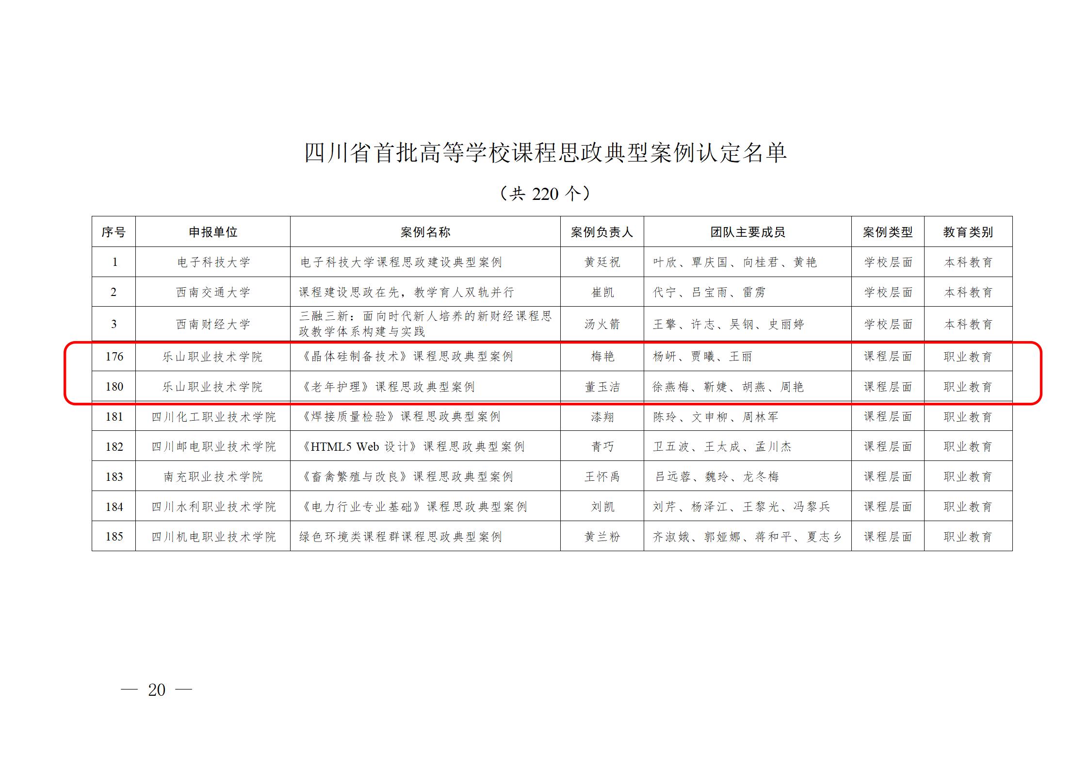 近日,四川省教育厅公布四川省首批高等学校课程思政标杆院(系)和课程思政典型案例认定结果,学校新能源与材料学院被认定为课程思政标杆院(系),《晶体硅制备技术》《老年护理》2个案例被认定为课程思政典型案例。