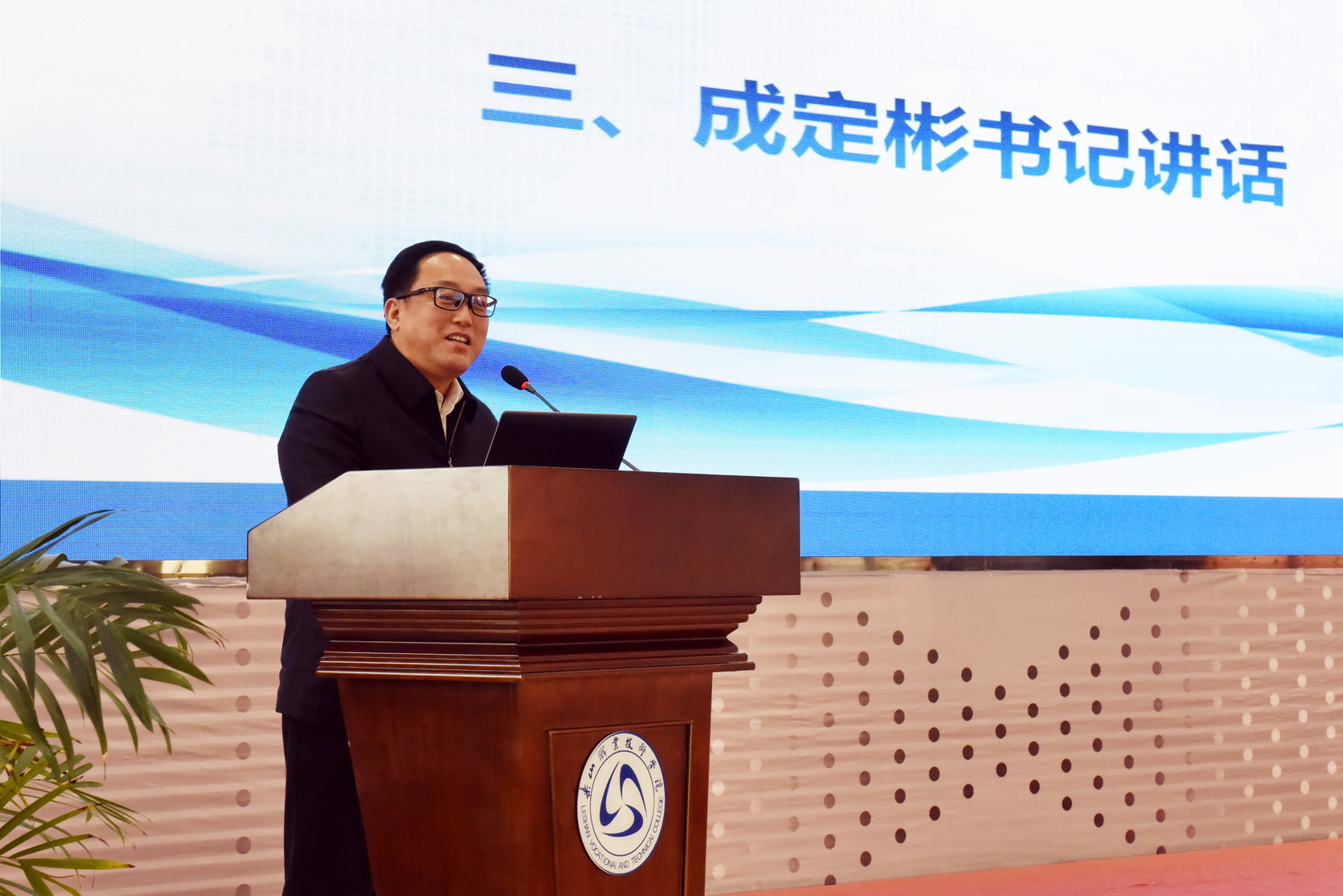 模拟汇报结束后,党委书记成定彬对“双高计划”中期绩效现场评价准备工作给予了肯定。他指出,要高度重视现场绩效评价环节,希望大家全力以赴,明确职责,落实细节,做好准备工作。