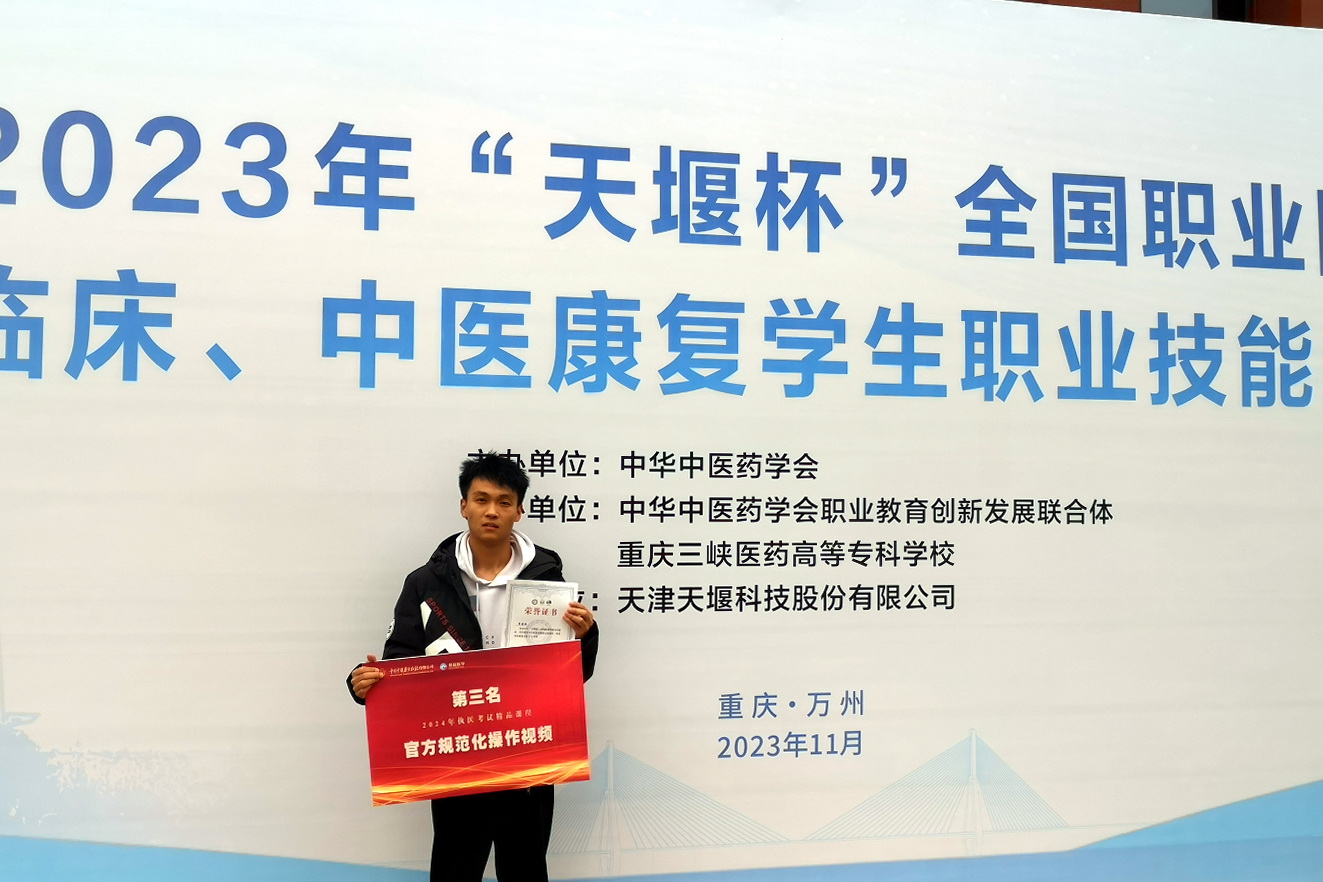 2023年11月22日至24日,由中华中医药学会主办、中华中医药学会职业教育创新发展联合体、重庆三峡医药高等专科学校承办的全国"天堰杯"2023年职业院校学生职业技能展示活动(中医临床专场)技能竞赛在重庆万州举行。