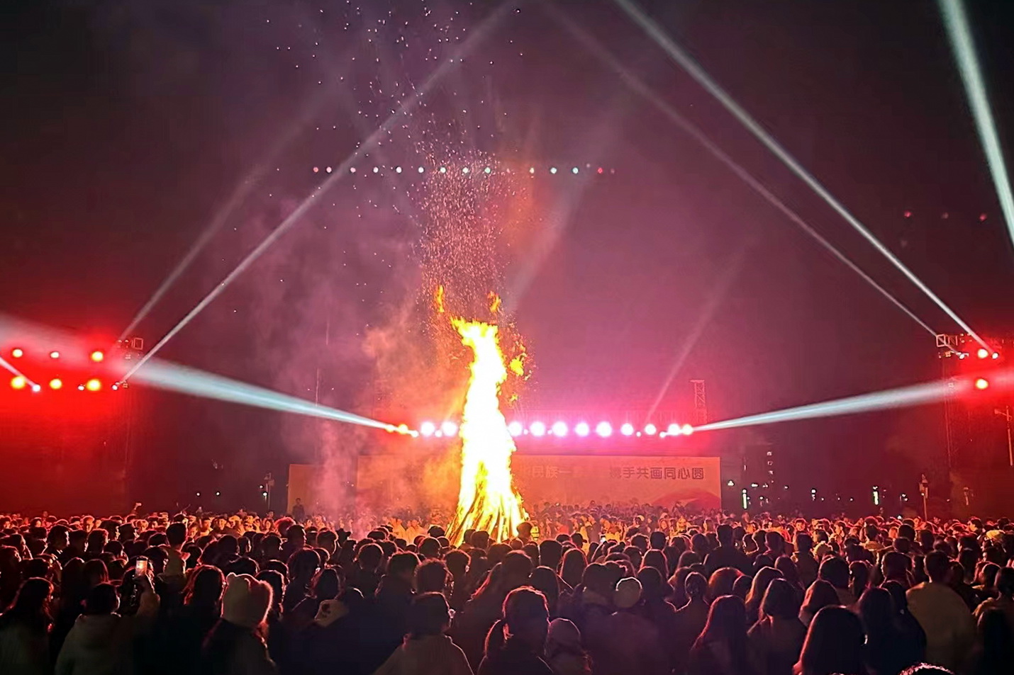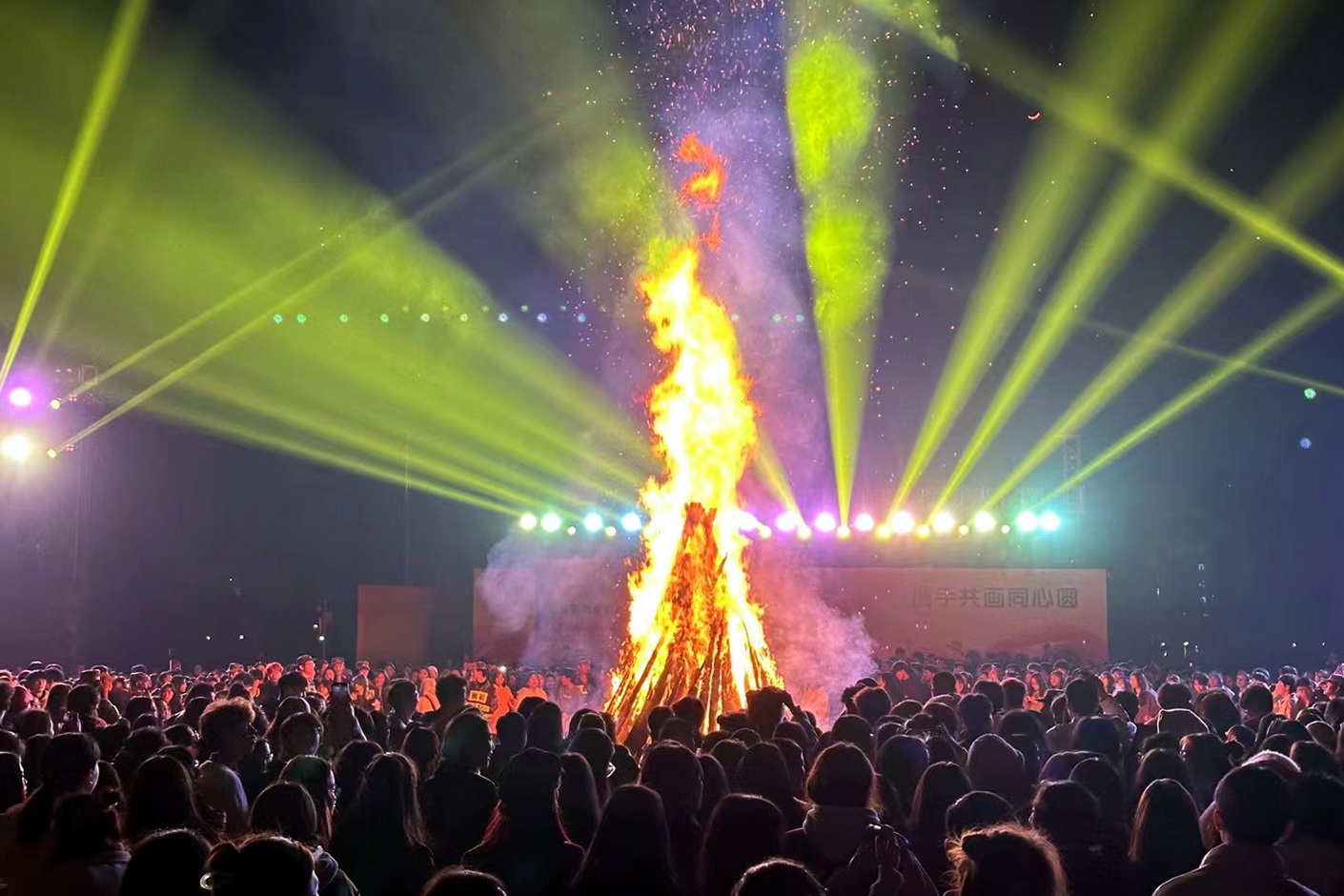 2023年11月19日,晚上7:00,各民族学生聚集在明德广场,参加“中华民族一家亲,携手共画同心圆”民族团结主题篝火晚会。晚会由BV伟德官方网站学生工作部部长胡文杰主持,乐山市民族宗教委员会二级调研员欧崇钦,乐山市市中区苏稽镇人民政府镇长徐彬菱,学校党委委员、副校长张学河,党委委员、副校长封家福等领导出席活动。欧崇钦、封家福先后致辞,向彝族学生送上了新年祝福,希望同学们铭记团结诞生兴旺,凝聚产生力量的真理。随后,张学河宣布“中华民族一家亲,携手共画同心圆”主题篝火晚会正式开始。各民族学生围着热情的火焰,大家手牵着手,伴随欢快的音乐跳起了醉美达体舞,印下了中华民族一家亲,携手共画同心圆的美好画卷。