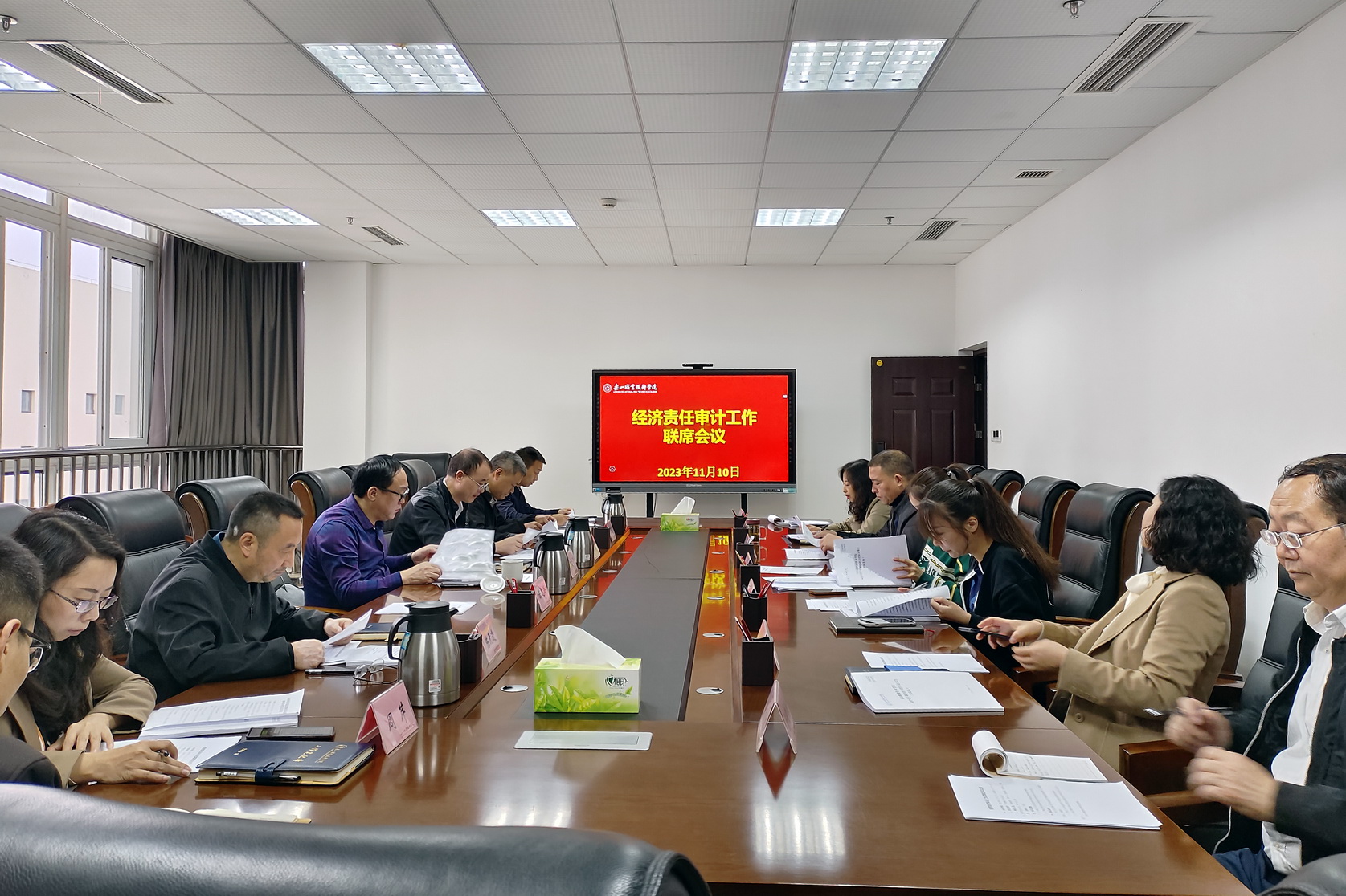 11月10日上午,学校经济责任审计联席会议在行政楼324会议室召开。校级领导、经济责任审计联席会议成员单位负责人、审计处人员参会。会议由校长刘忠主持。