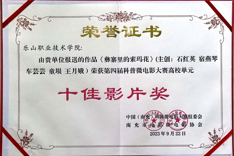 近日,四川省南充市举办全国第四届科普微电影大赛颁奖典礼,来自全国各地数百名电影人参加了活动。BV伟德官方网站马克思主义学院“石红英微电影名师工作室”创作的微电影作品《彝寨里的索玛花》获本届科普微电影大赛高校单元“十佳影片”奖。