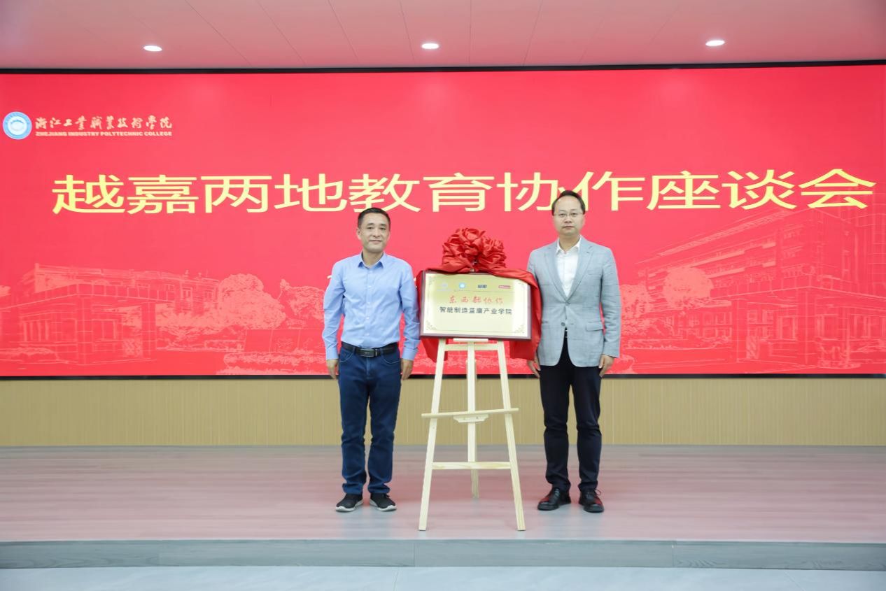 会上举行了“智能制造蓝鹰产业学院”揭牌仪式。BV伟德官方网站党委副书记、工会主席张佳,浙江工业职业技术学院党委委员、副校长林克伟,参与揭牌。